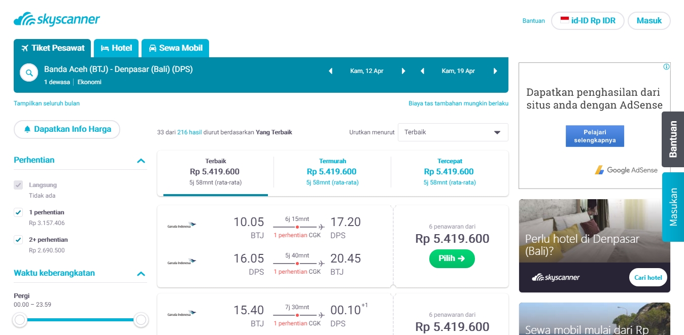 Di Skyscanner, selain kita dapat melihat harga terbaik yang ditawarkan dari hotel dan maskapai, kita dapat melihat promo tiket yang sedang berlangsung seperti promo Tiket Pesawat Garuda Indonesia di situs Skyscanner lho!